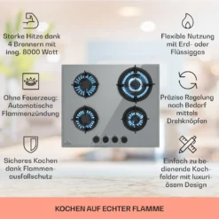 Firetale Gaskochfeld 4-flammig 60 Cm Aluminium-Brenner Inkl. Schlauch Und Druckminderer