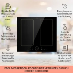 Victoria 4 Zonen Gaskochfeld 4-flammig Sabaf-Brenner Glaskeramik