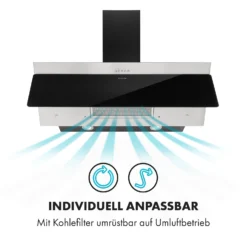 Die Dunstabzugshaube kann mit Hilfe von einem Aktivkohle-Filter (Artikel 10032844) auf Umluft-Betrieb umgerüstet werden.