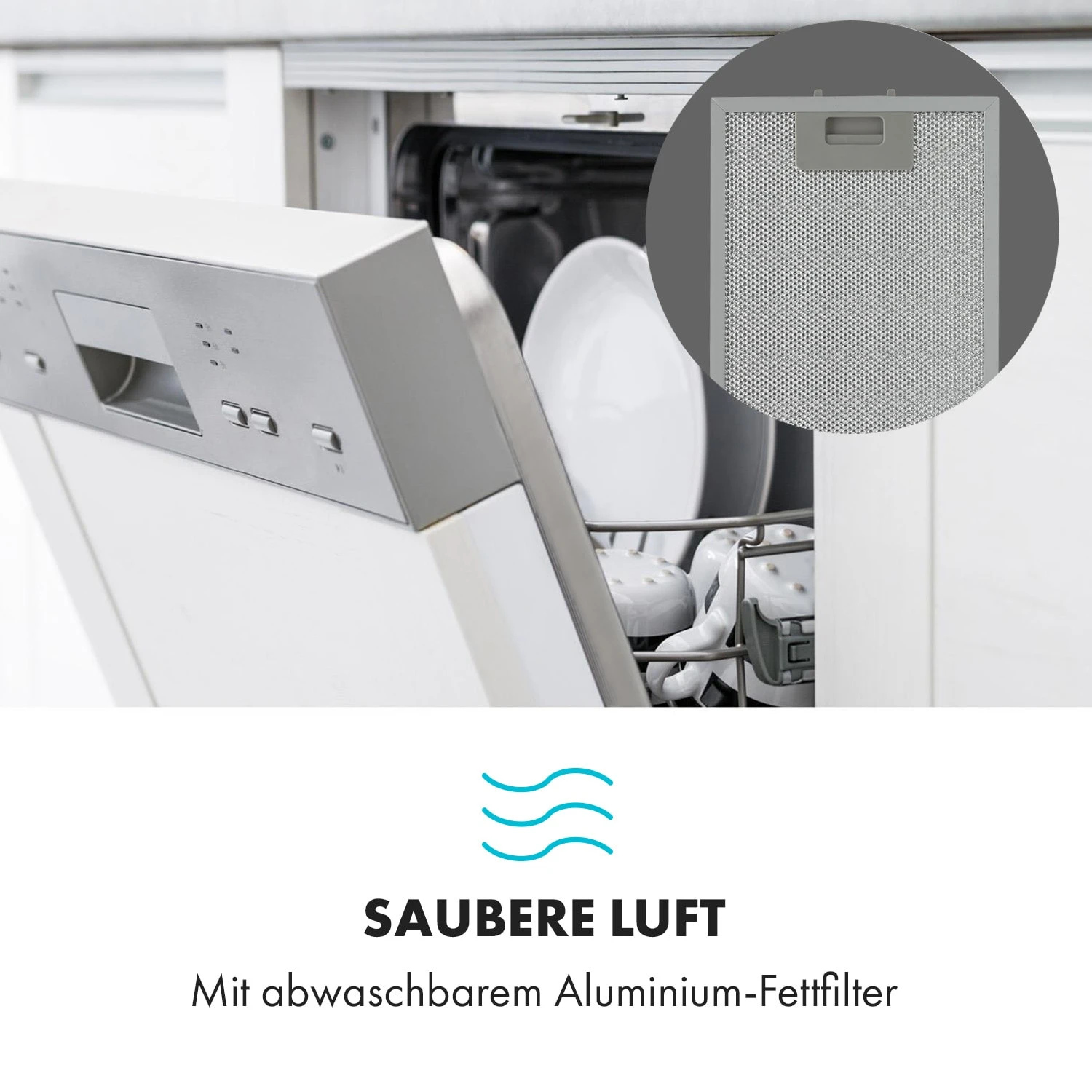 Beste Luft in der Küche: Die Klarstein Alessia Dunstabzugshaube verleiht Küchen einen edlen Glanzpunkt und beseitigt schwungvoll Dampf und Dunst beim Kochen.