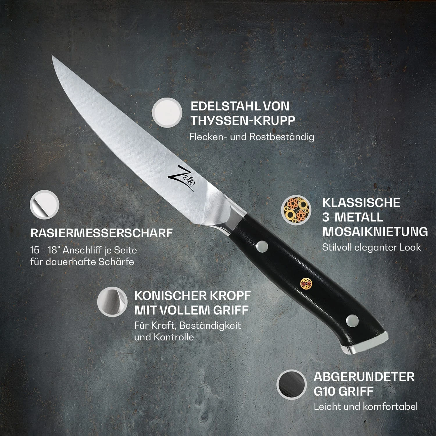 Alpha-Royal German 5″ Steakmesser 4er-Set 56 HCR Edelstahl