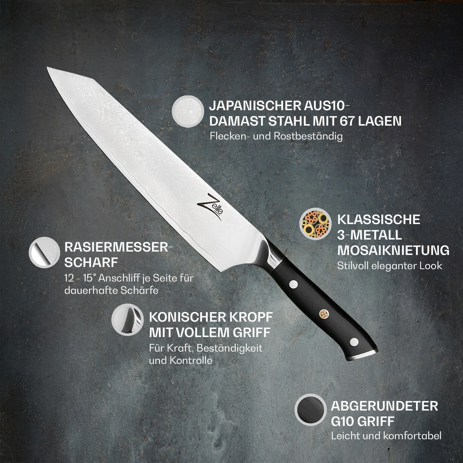 Alpha-Royal Japanese Serie 9″ Kiritsuke Messer Damaszener-Stahl