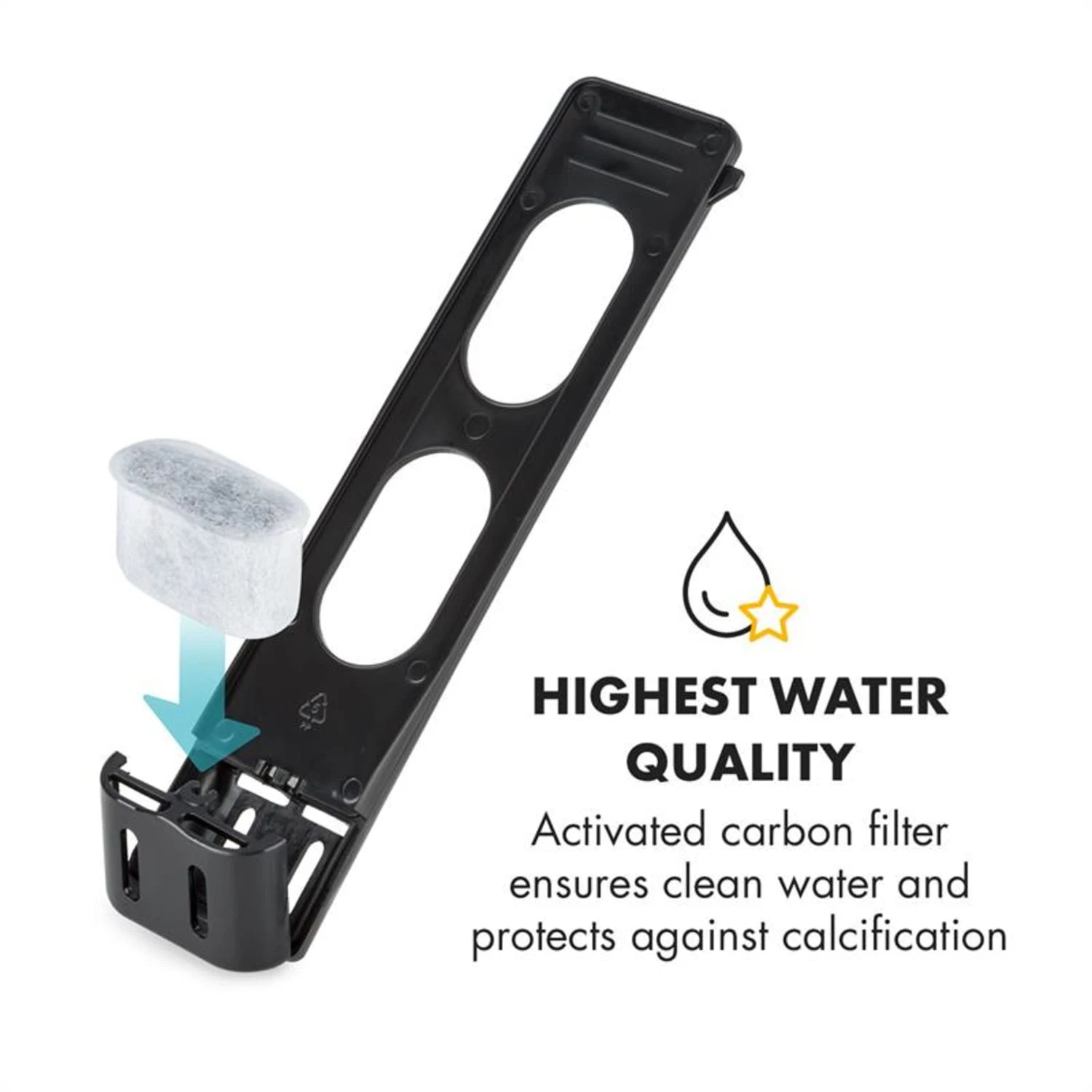 - integrierter Aktivkohle-Filter im Wassertank zur Enthärtung des Wassers