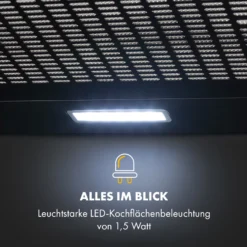 „Mehr Licht!“ waren nicht nur die letzten Worte Goethes, sondern ist auch das Credo unserer Abzugshauben. Mit ihrem leuchtstarken und verbrauchsarmen LED-Kochfeldlicht macht daher auch die Klarstein Capannina Unterschrank-Haube schummrigen Lichtverhältnissen den Garaus. So ist jederzeit sichtbar, was in den Töpfen und Pfannen kocht und brutzelt. Leistungsstufen und Licht werden ganz unkompliziert per Bedienfeld an der Front der Haube gewählt. Für den modernen Look und einen Hauch von Luxus in der Küche sorgt das abgerundete Gehäuse.