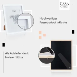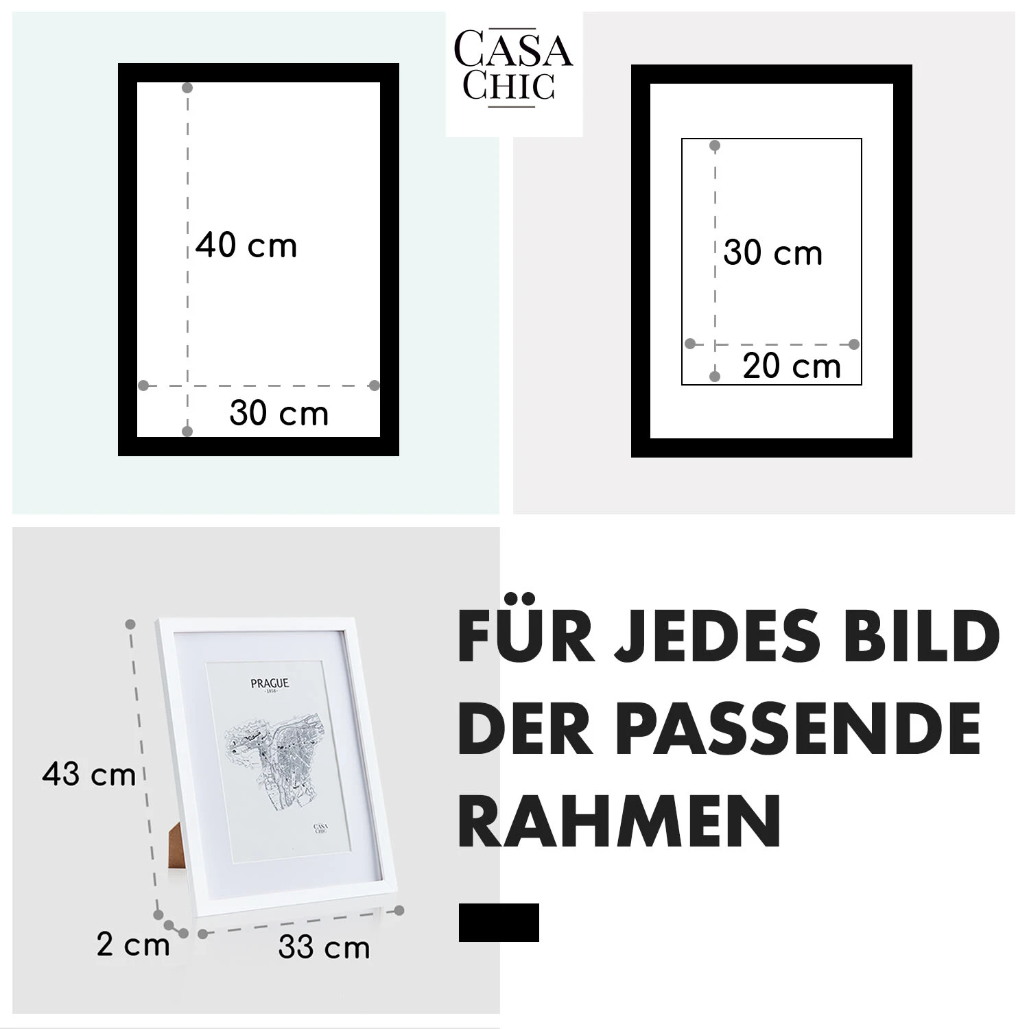 Der ansprechende Everton Bilderrahmen von Casa Chic by blumfeldt aus Echtholz bringt deine Fotos und Bilder sowohl im Hoch- als auch im Querformat ideal zur Geltung. Bleibe flexibel und gestalte wunderschöne Wandcollagen oder arrangiere deine Lieblingsfotos auf dem Sideboard oder im Regal. Das mitgelieferte Passepartout überlässt dir die Wahl des passenden Bildausschnitts. Ein schlichtes Rahmenprofil und die Frontscheibe aus Echtglas sorgen für Eleganz und besten Schutz.