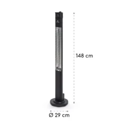 Der Wärmespender kann nicht nur in den 3 Heizstufen niedrig, mittel und hoch eingestellt werden – dank einer integrierten Drehvorrichtung verfügt der blumfeldt Heat Guru Plus Terrassen-Heizstrahler auch über eine zuschaltbare, horizontale Oszillation von 60°, um mehrere Personen gleichzeitig mit angenehmer Wärme zu versorgen. Für eine effektive Strahlung sorgt das Carbon-Heizelement mit einer Heizleistung von 2000 Watt. Das IR ComfortHeat-System liefert dabei nicht nur sehr schnell Wärme, sondern gibt sie dank hocheffizientem Reflektor und langwelliger Infrarot-Strahlung gezielt an in der Nähe befindliche Personen und Gegenstände ab, ohne die Luft aufzuheizen. Genieße wohlige Wärme ab der ersten Sekunde! Eine Zeitschaltuhr ermöglicht zudem die automatische Abschaltung zwischen 1 und 9 Stunden. Gesteuert werden kann der Heizstrahler sowohl über leichtgängige Druckknöpfe mit digitalem Display als auch über die beiliegende Fernbedienung. Dank IP44 ist der Strahler mit seinem Gehäuse aus eloxierter Aluminiumlegierung vor Spritz- und Strahlwasser geschützt und ideal für den Einsatz im Freien geeignet. Durch seine kompakten Maße und das geringe Gewicht ist er äußerst mobil und überall einsetzbar, wo er gebraucht wird.