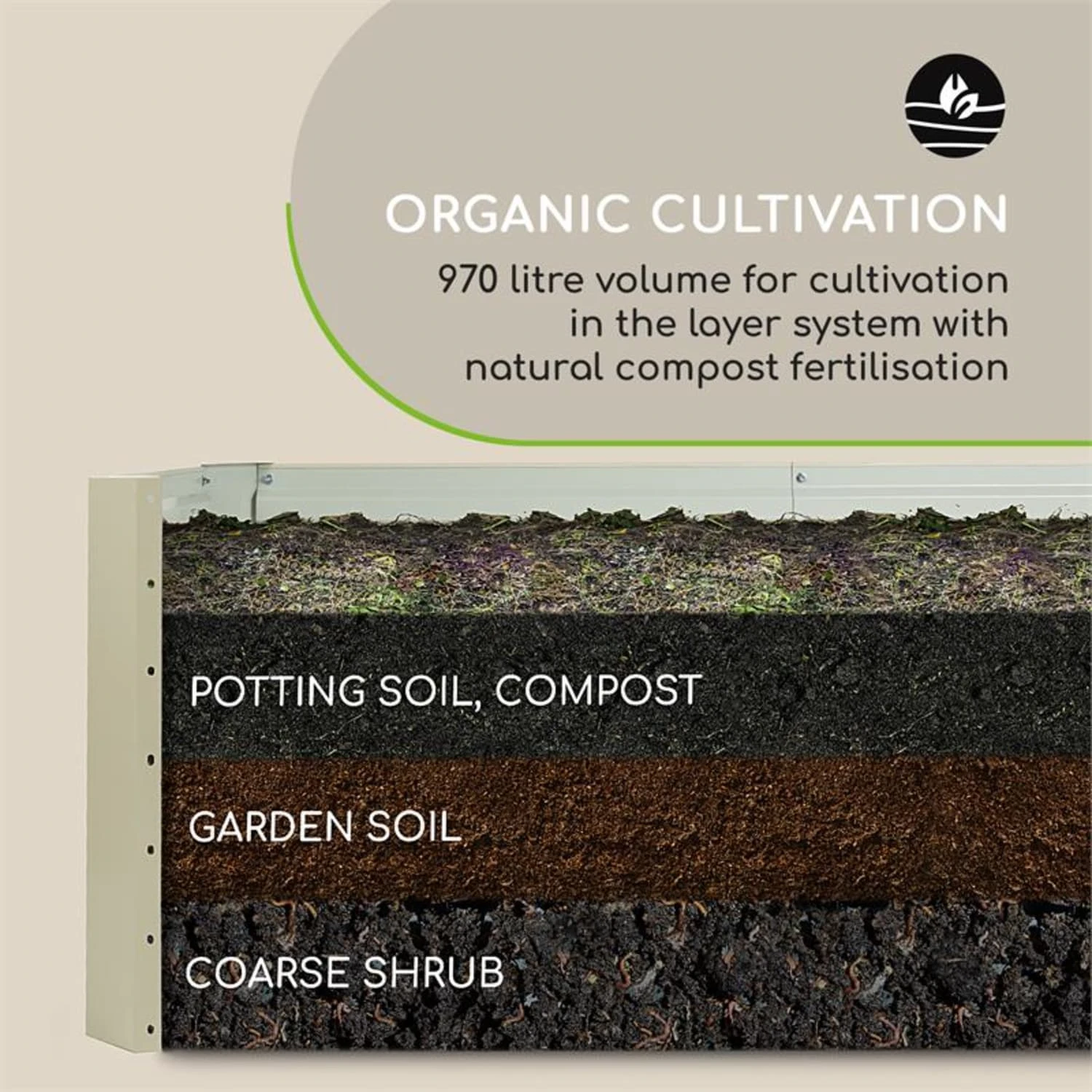 Denn saftige Tomaten, süße Erdbeeren, knackige Zucchini und aromatische Kräuter lassen sich dank optimaler Wachstumsbedingungen spielend leicht heranziehen. Einjährige Pflanzen und alljährige Gärtnerfreuden: Die stabile Rahmenkonstruktion des Gartenbeetes ist aus Stahl-Wellblech und mit einem speziellen 120 g/m² Zink-Aluminium-Weather-Shield-Coating sicher gegen Witterungseinflüsse geschützt. So trotzt das High Grow Straight ganzjährig Wind und Wetter.