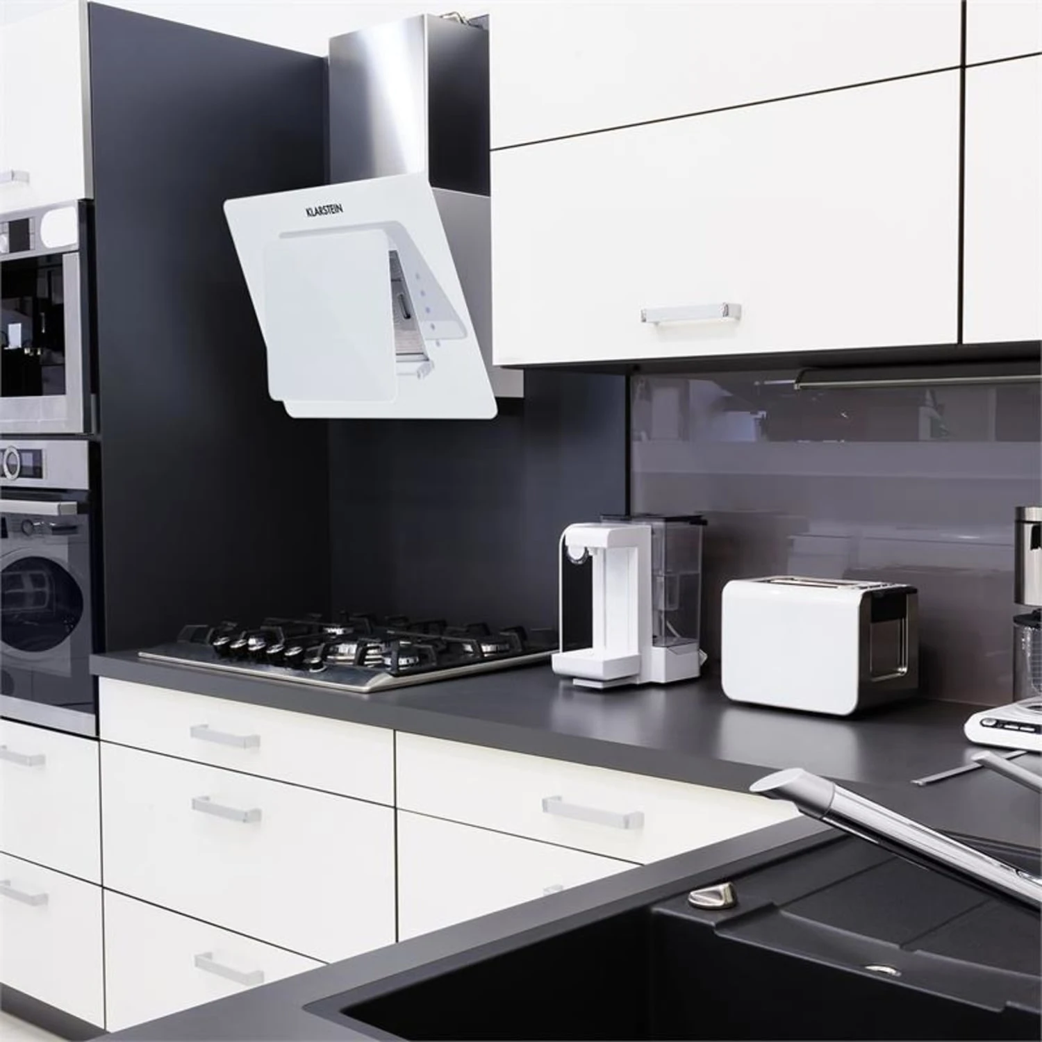 Frischen Glanz versprüht die Klarstein Lorea Dunstabzugshaube mit ihrer eleganten Front aus gehärtetem Spezialglas vor allem in modern eingerichteten Küchen, versteht sich aber auch gut als luxuriöser Kontrapunkt in klassischen Umgebungen.
