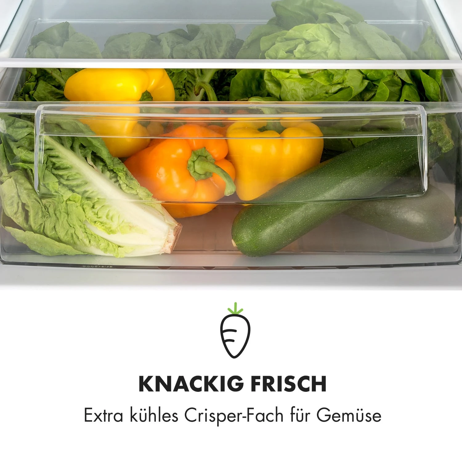 Jeden Tag ein anderes Kunstwerk erschaffen oder als praktisches Memoboard nutzen: Die Klarstein Miro XL Kühl- und Gefrierkombination bringt mit ihrer mit Kreide beschreibbaren Front nicht nur coole Eleganz in die Küche. Ihr großer Innenraum bietet viel Platz für Lebensmittel. Mit ihren vier Glasböden, 4 Türfächern und einem extra kühlen Crisper-Fach für Gemüse fällt das Sortieren leicht. Extra cool ist auch das unterseitige, separate Eisfach.