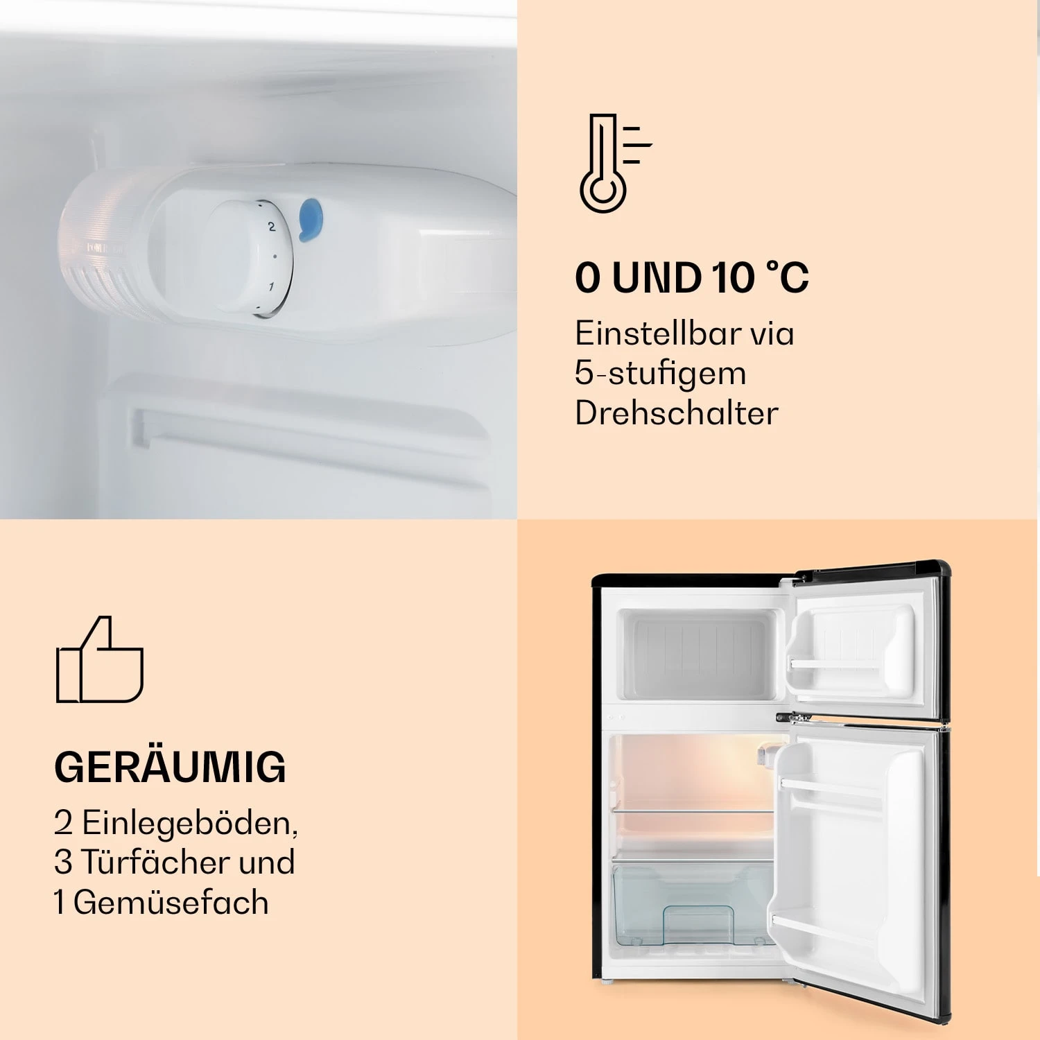 - Innenmaße Kühlschrank: ca. 38 x 48 x 33 cm (BxHxT)