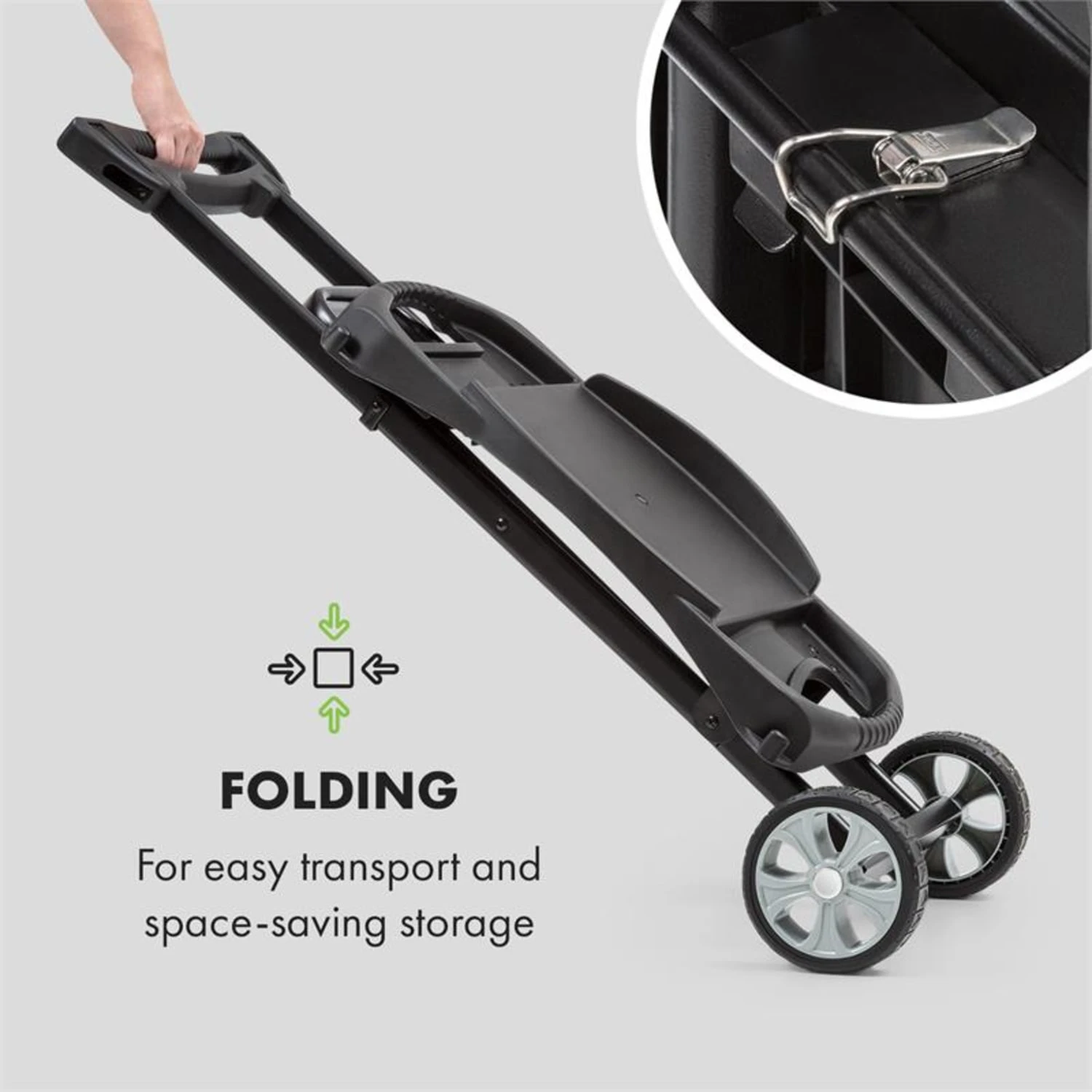 Um höchste Mobilität zu ermöglichen, lassen sich die Seitenteile in Sekundenschnelle abnehmen. Der Gasgrill kann nun mit Hilfe seiner großzügigen Griffen komfortabel getragen werden und findet überall im Außenbereich schnell einen Aufstellort. Für noch mehr Mobilität sorgt der im Set enthaltene Klarstein Parforce Stand Grilltisch. Der hebt den Grill nicht nur auf bequeme Standhöhe, sondern kann dank seiner beiden Räder auch ganz leicht versetzt werden. Und wird er nicht mehr gebraucht, ist er dank Klappfunktion im Handumdrehen platzsparend verstaut.