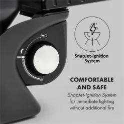 Dank SnapJetIgnition System ist der Grill nach Anschluss einer Gasflasche sofort betriebsbereit und entzündet zuverlässig und sicher seine Flamme. Entsprechend benötigter Gasschlauch und Druckminderer sind direkt im Set enthalten. Die Grillgitter und die herausnehmbare Öl-Auffangschale lassen sich sehr einfach reinigen und sorgen so für hygienische Sauberkeit.