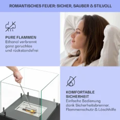 Phantasma Cubo Ethanol-Kamin Rauch- & Geruchlos Edelstahl-Brenner Sicherheitsglas