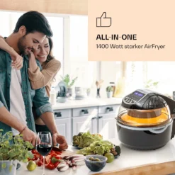 Heiß, knusprig, lecker. Die Klarstein VitAir Smart Heißluftfritteuse macht Snacken zum Vergnügen! Entdecke die neue Knusprigkeit von Pommes, ChickenWings, Steaks, Kroketten und vielem mehr. In deiner neuen VitAir gelingt nicht nur Fingerfood sondern auch Kuchen, Fisch und vieles mehr, dafür sorgen die 20 wählbaren Programme. Und das beste: Hier brauchst du zum Frittieren, Braten oder Backen kein Fett! Super schnell, super knusprig. Und damit deine Snackfreuden fertig sind, wann du es willst, ist die Klarstein VitAir Smart Heißluftfritteuse komplett mit der Klarstein App steuerbar – inklusive Rezepten und Ideen für heiße Genüsse.